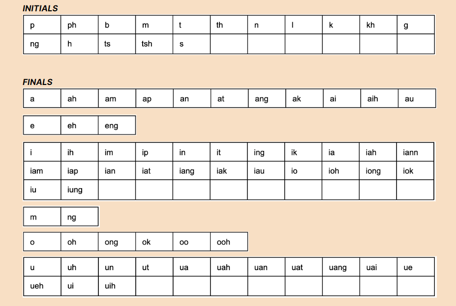 Each Hokkien syllable includes a tone, an initial, and a final.